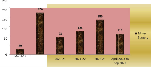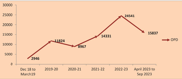In the fiscal year 2018-2019, a total of 2,946 patients received OPD services. This number grew to 11,824 in 2019-2020, indicating the rising demand for quality healthcare. The subsequent years continued to witness an upward trend, with a total of 14,331 patients served in 2021-2022 and 25,541 in 2022-2023.